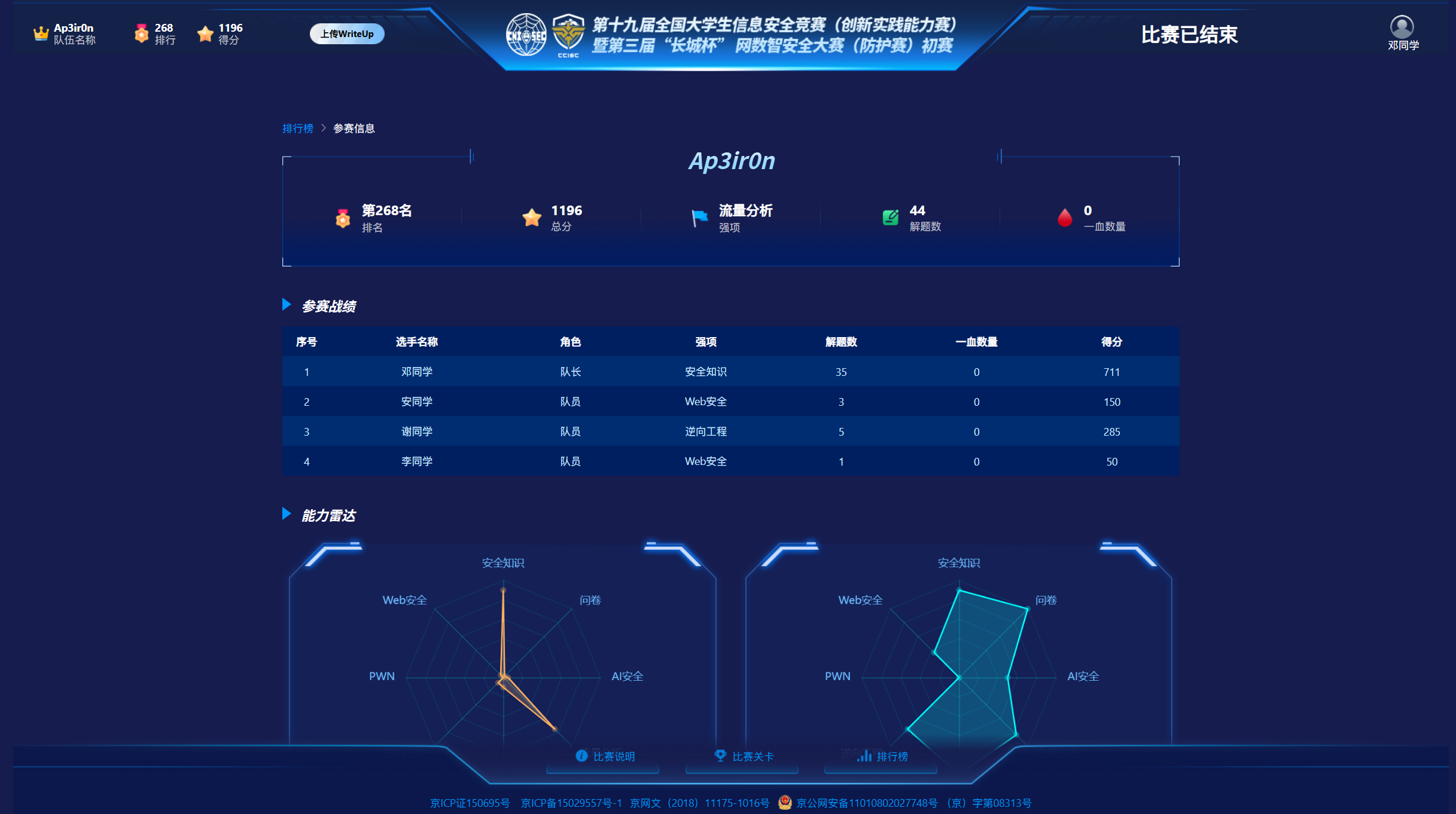 Index 题解 ¶ crypto misc 完整题解 赛果 ¶ 队名:Ap3ir0n 队友:andeli123 & spdc-elm & auspiow 吐槽 ¶ 密码学一共就出 3 题,还都是最后只有 50pt 的简单题,何意味? 附件用百度网盘 / 腾讯微云下载,何意味? 如果这对你有用的话,请给我点个star吧 ===> 感谢支持!如果能点个Star就更好啦! 感谢反馈!可以在下方评论区留言或者直接联系我噢哦!
