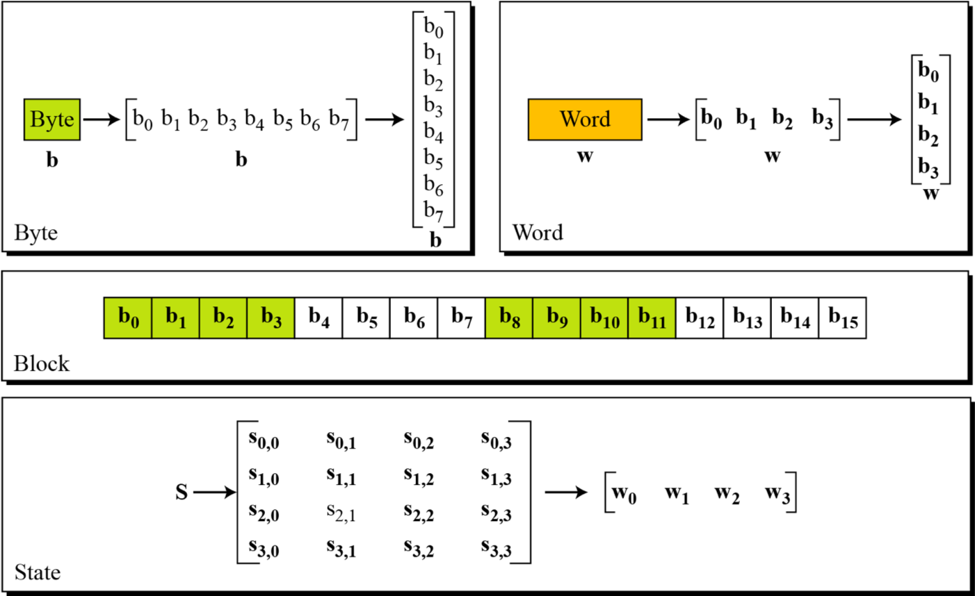 从上图可以看到,轮密钥加就是将当前的“状态”与子密钥进行逐位异或。