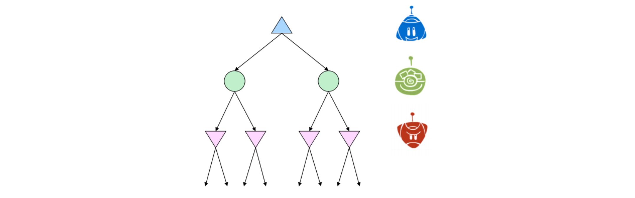 In fact, doing so inherently gives rise to cooperation across all minimizers, as they alternatively take turns further minimizing the utility attainable by the maximizer(s). It’s even possible to combine chance node layers with both minimizers and maximizers.