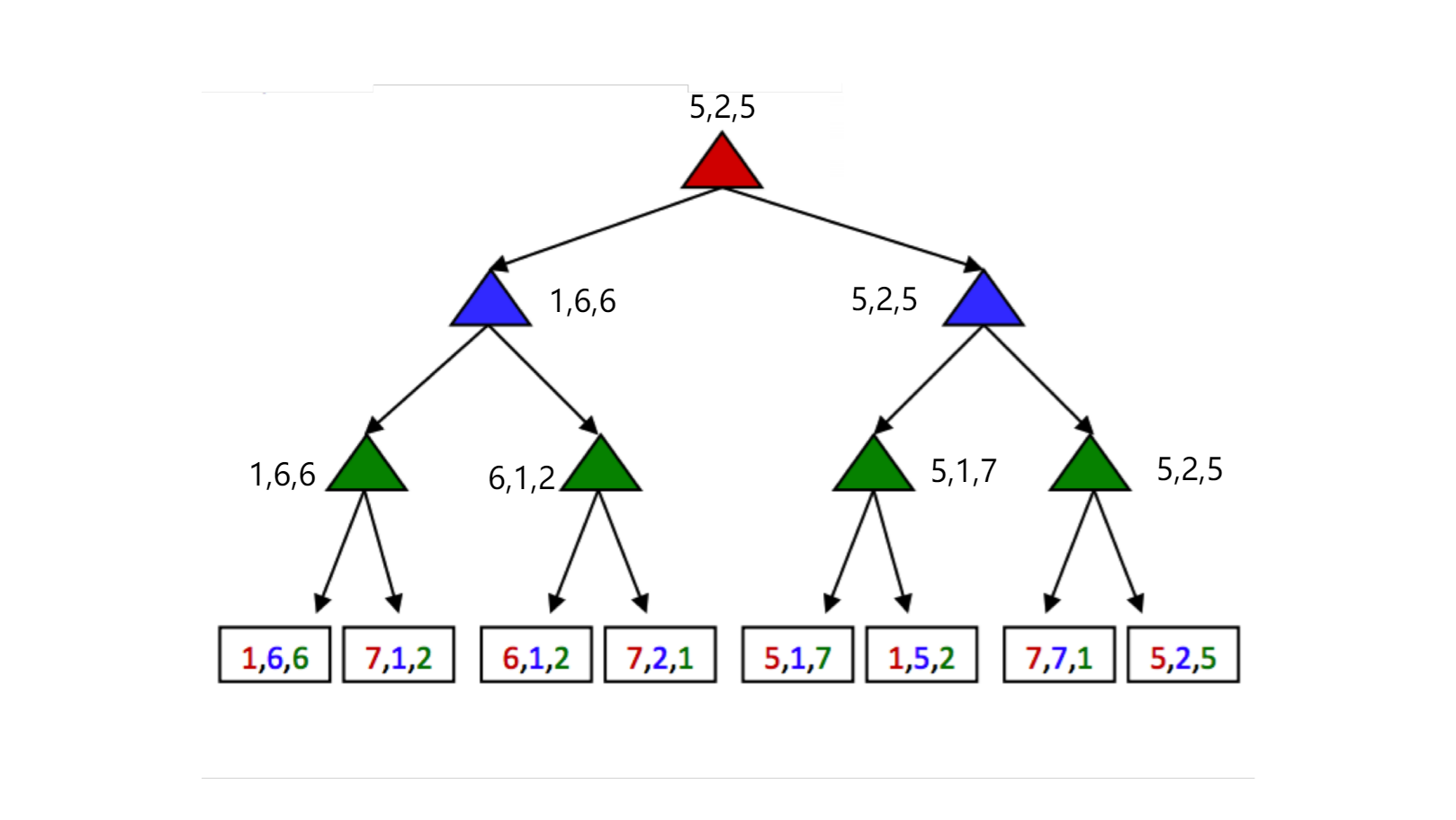 Not all games are zero-sum. Indeed, different agents may have have distinct tasks in a game that don’t directly involve strictly competing with one another. Such games can be set up with trees characterized by multi-agent utilities.